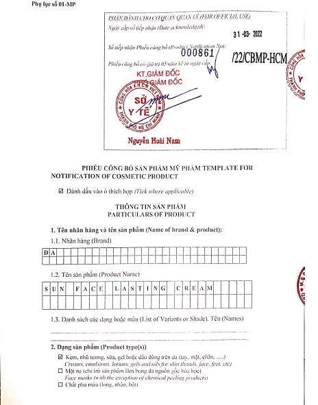 Tên sản phẩm: Sun Face Lasting Cream.